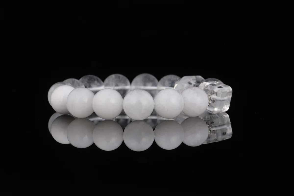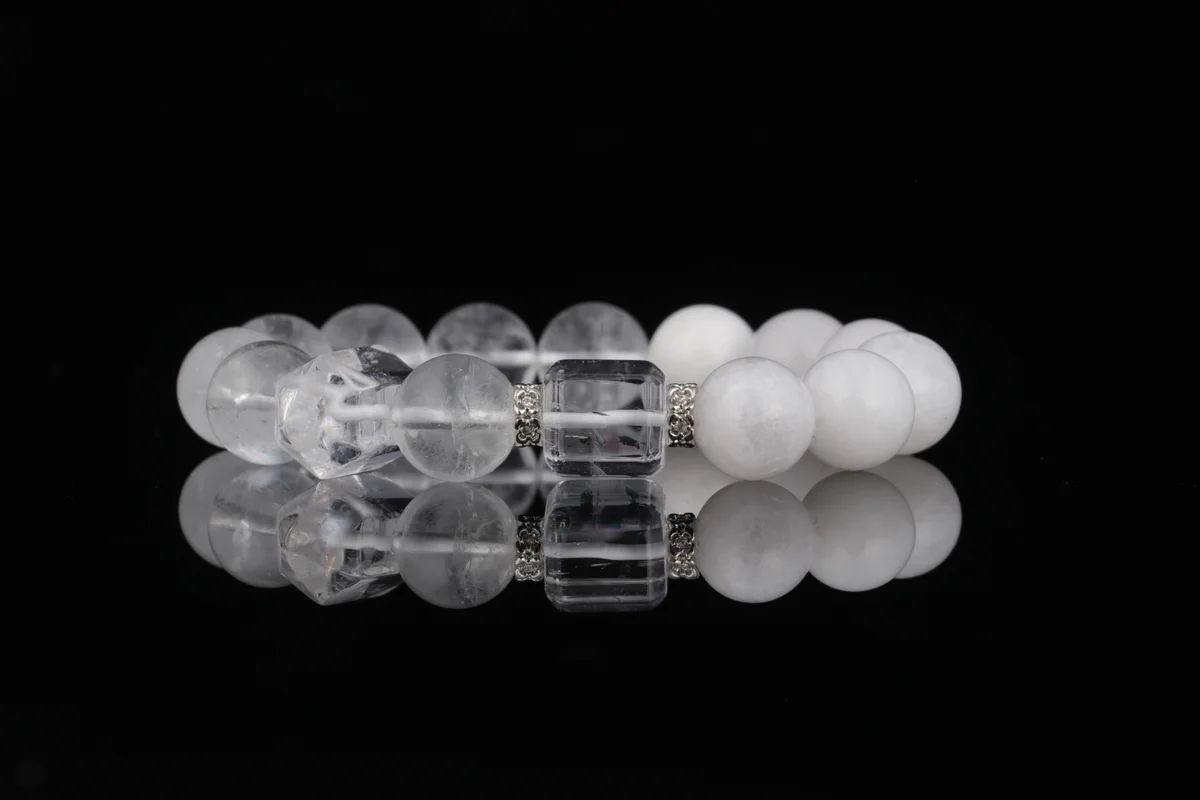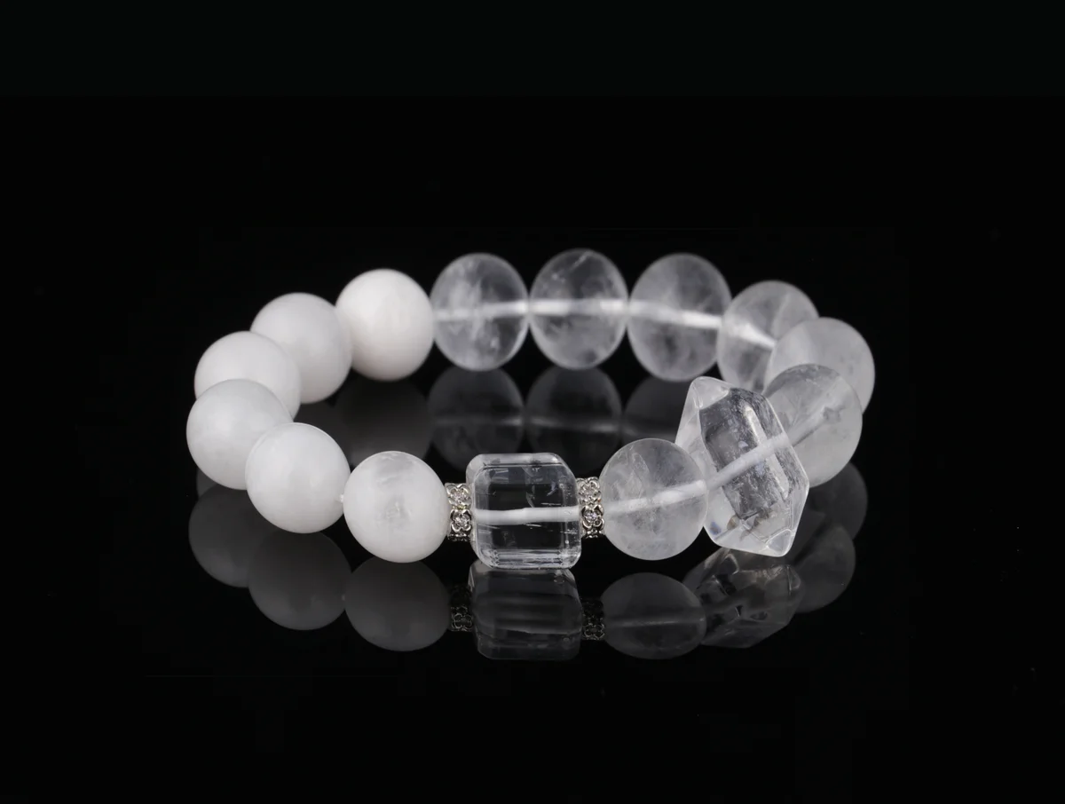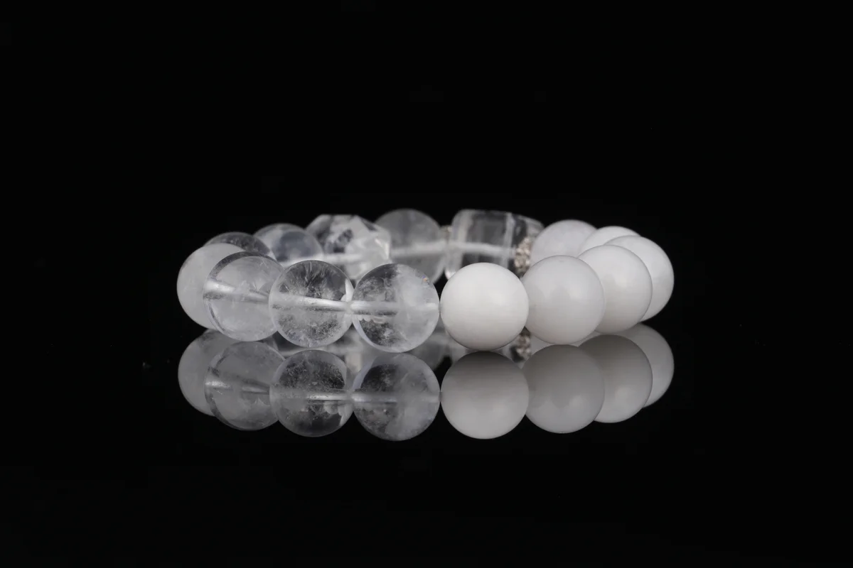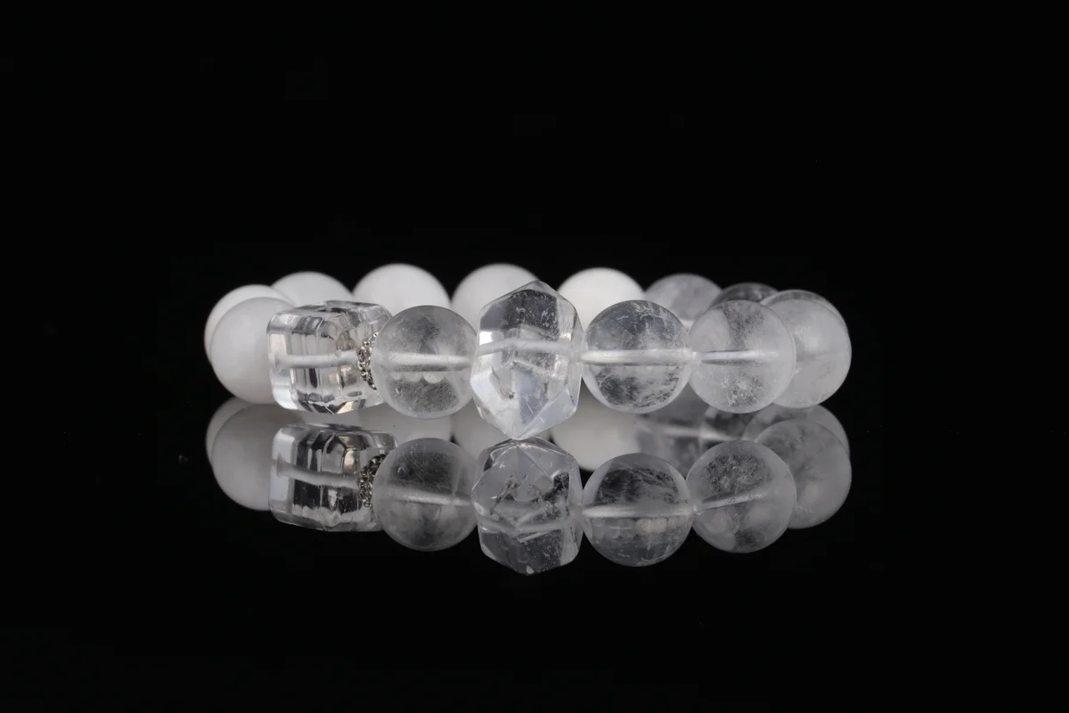 正確佩戴白阿塞白幽靈水晶手串,產品簡介建議使用左進右出法則,通常戴在左手以增強招財效果。作為天然水晶,保養時需避免硬物碰撞和化學物質接觸,定期用軟布擦拭保持光澤。由於它是能量石,可以定期在月光下淨化以恢復能量。這款手串專為定制而生,溫柔對待它,能延續其治癒力,成為你日常的情感陪伴。