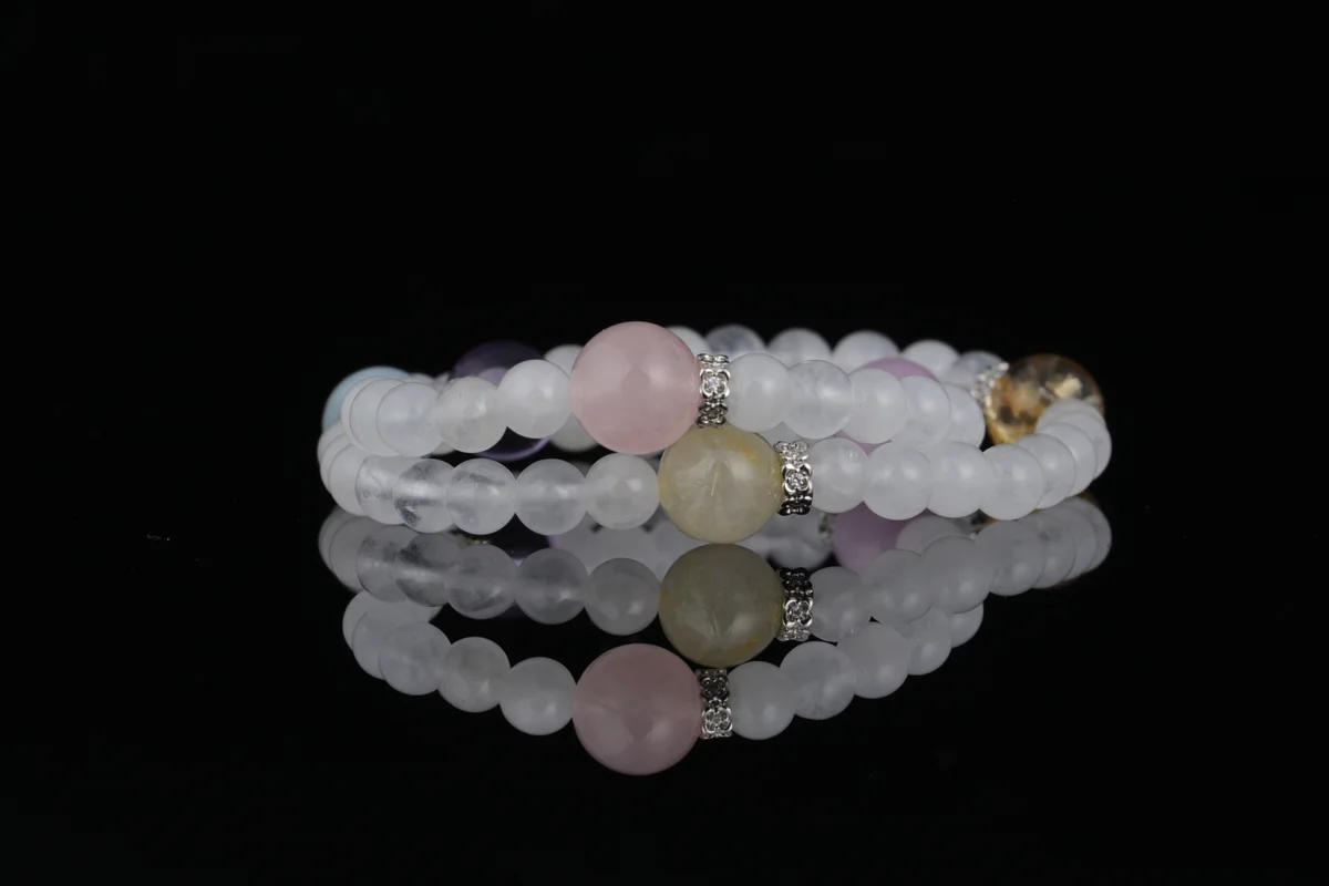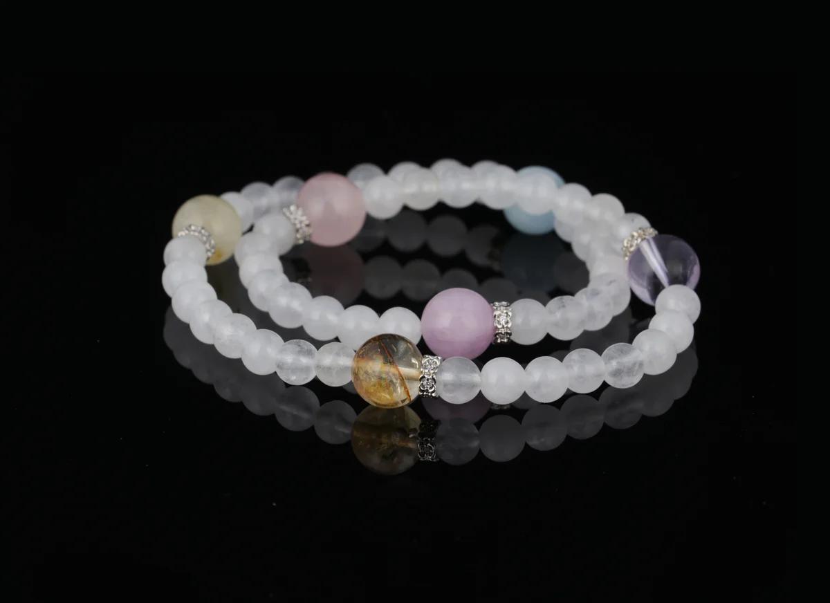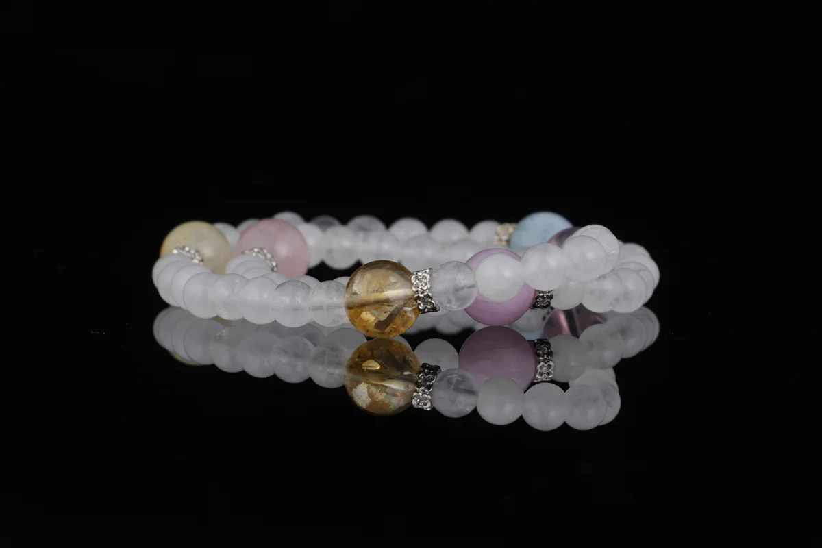 天然粉晶白水晶黃塔晶紫水晶手串 五行能量生辰定制招財旺運必入