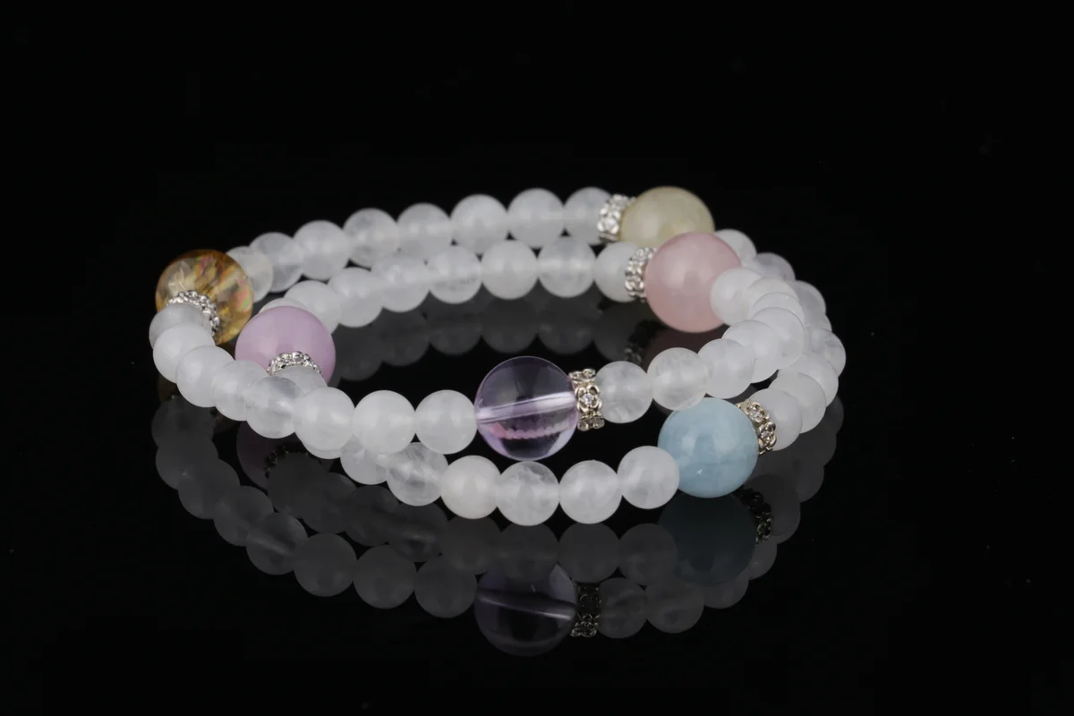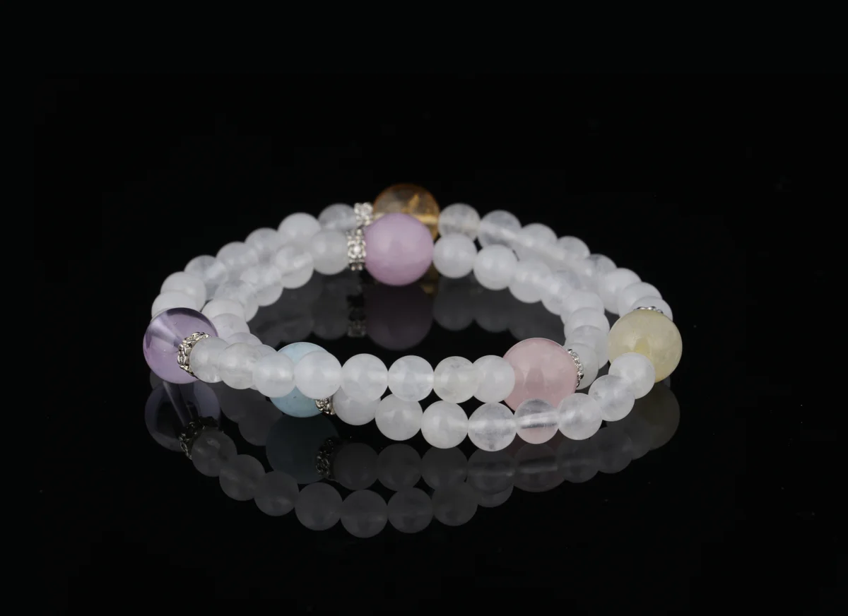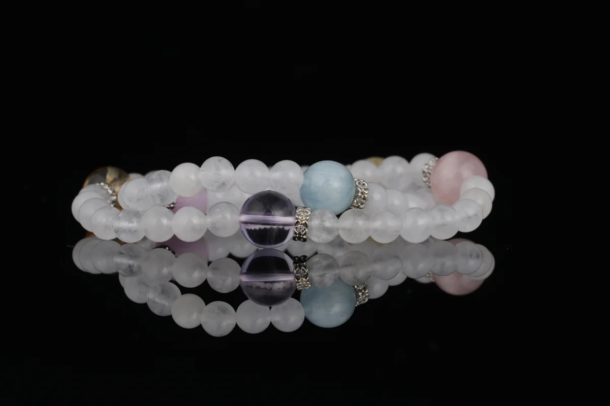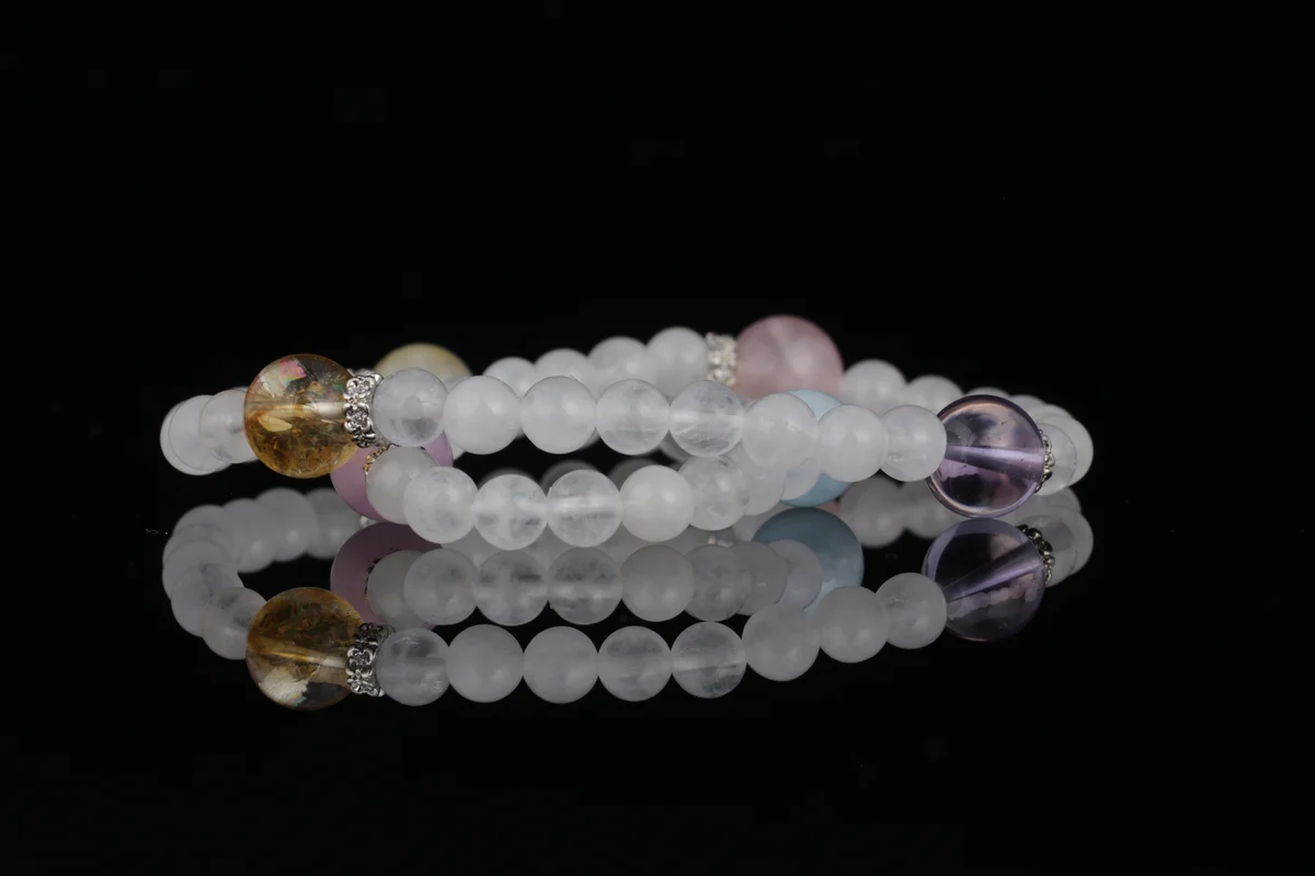 天然粉晶白水晶黃塔晶紫水晶手串 五行能量生辰定制招財旺運必入