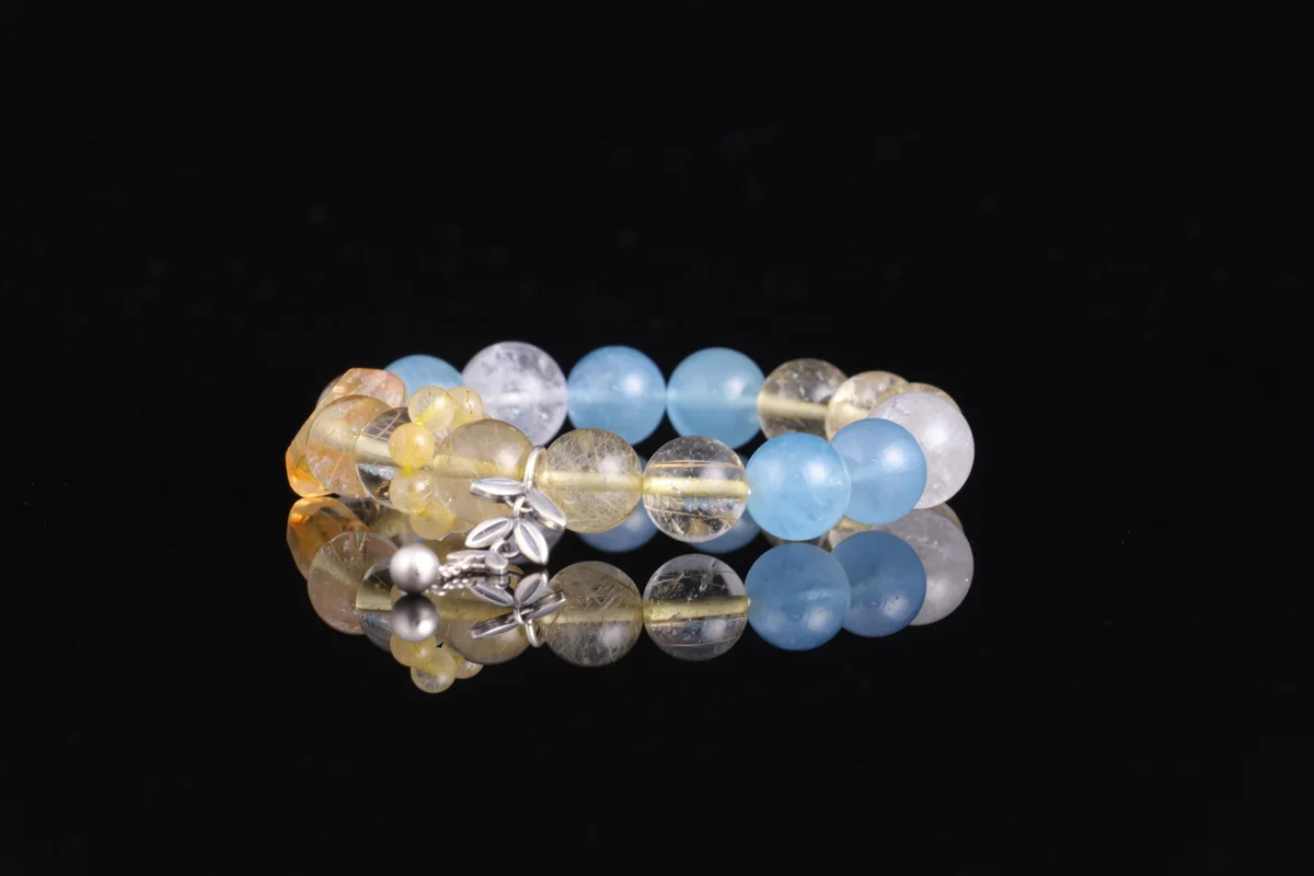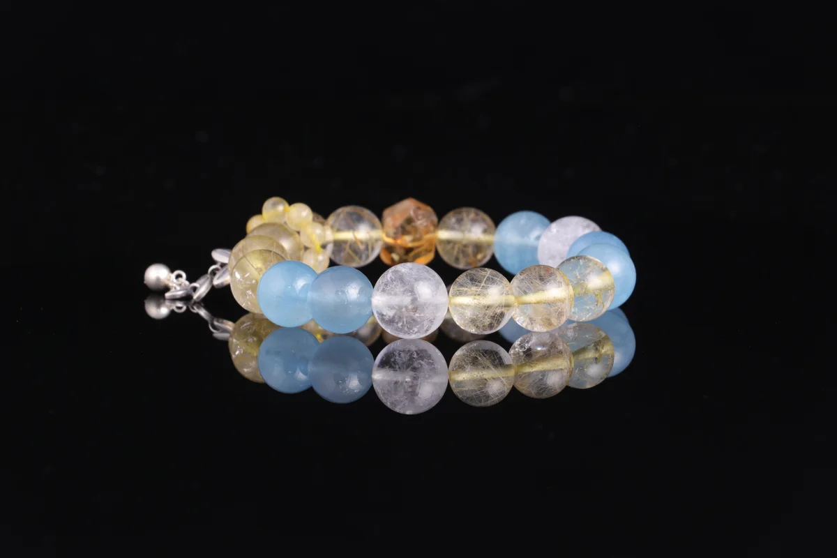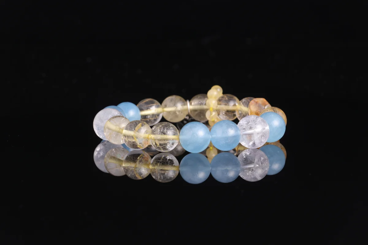 🌟【生辰定制·五行能量手串】天然海藍寶+金髮晶+白阿塞三色合一,對應水、金、土五行能量,調和命理根基。💧海藍寶助溝通開智慧,💰金髮晶強力招正財,⚪白阿塞清理負能穩氣場。每日佩戴於左手(左進右出),招財轉運、護佑根基,特別適合需補水補金、求事業財運的您。天然水晶每顆紋路皆獨特,能量純淨,隨生辰定制專屬你的守護力。