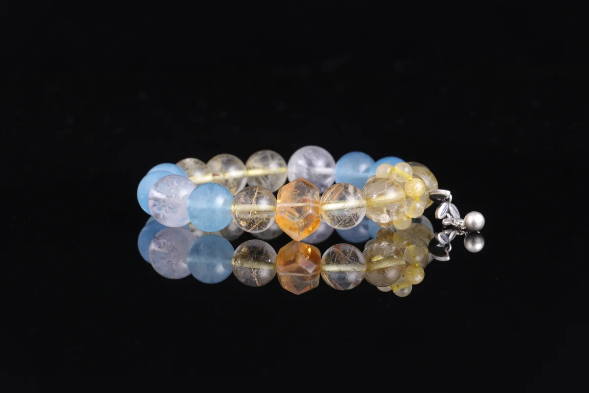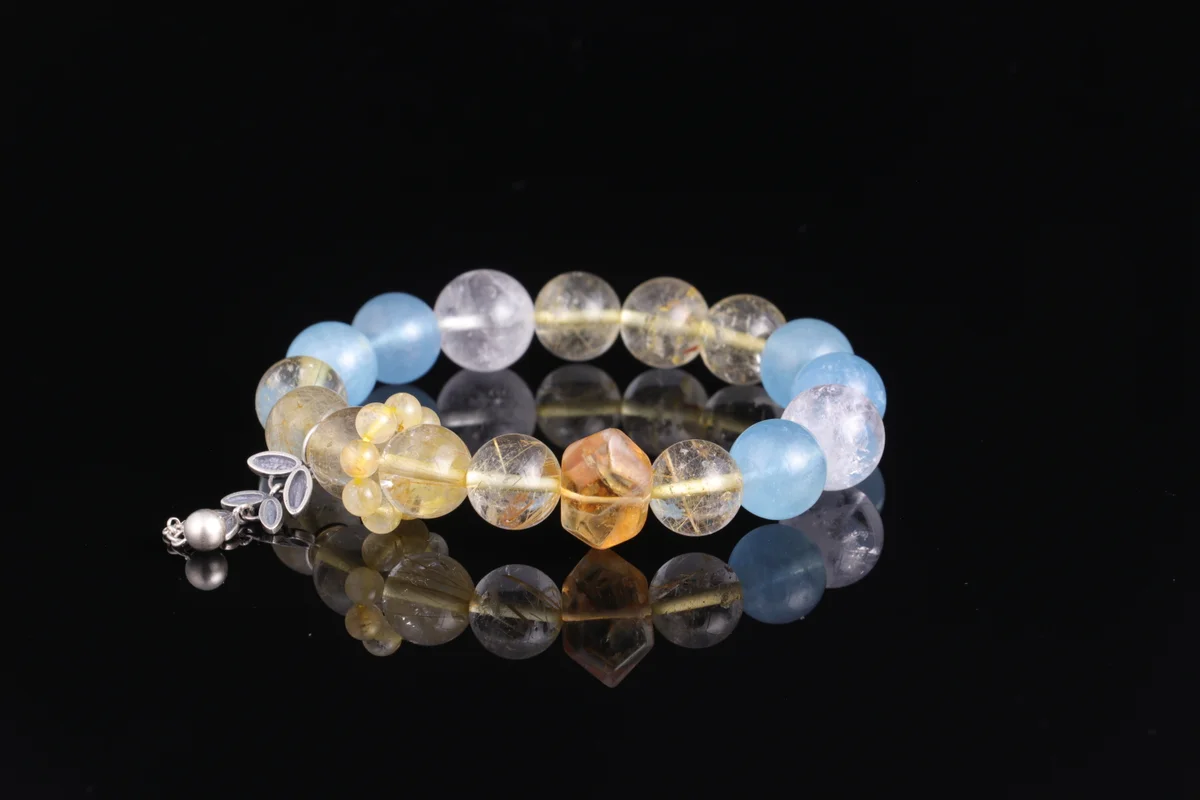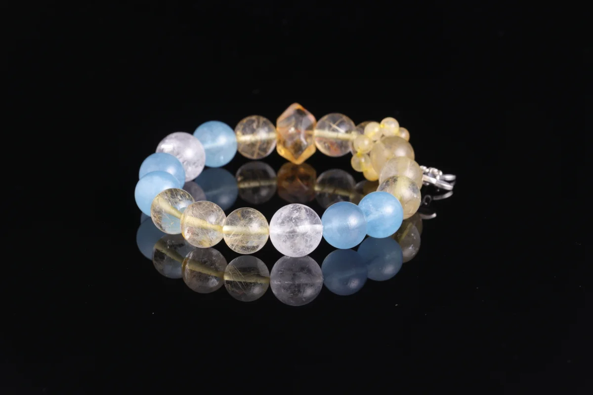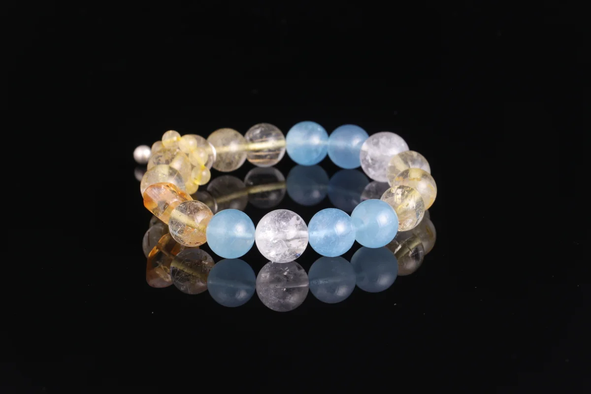 🌟【生辰定制·五行能量手串】天然海藍寶+金髮晶+白阿塞三色合一,對應水、金、土五行能量,調和命理根基。💧海藍寶助溝通開智慧,💰金髮晶強力招正財,⚪白阿塞清理負能穩氣場。每日佩戴於左手(左進右出),招財轉運、護佑根基,特別適合需補水補金、求事業財運的您。天然水晶每顆紋路皆獨特,能量純淨,隨生辰定制專屬你的守護力。