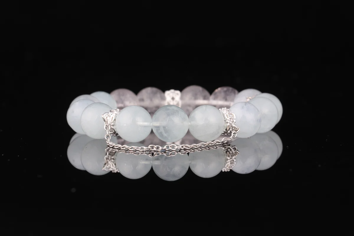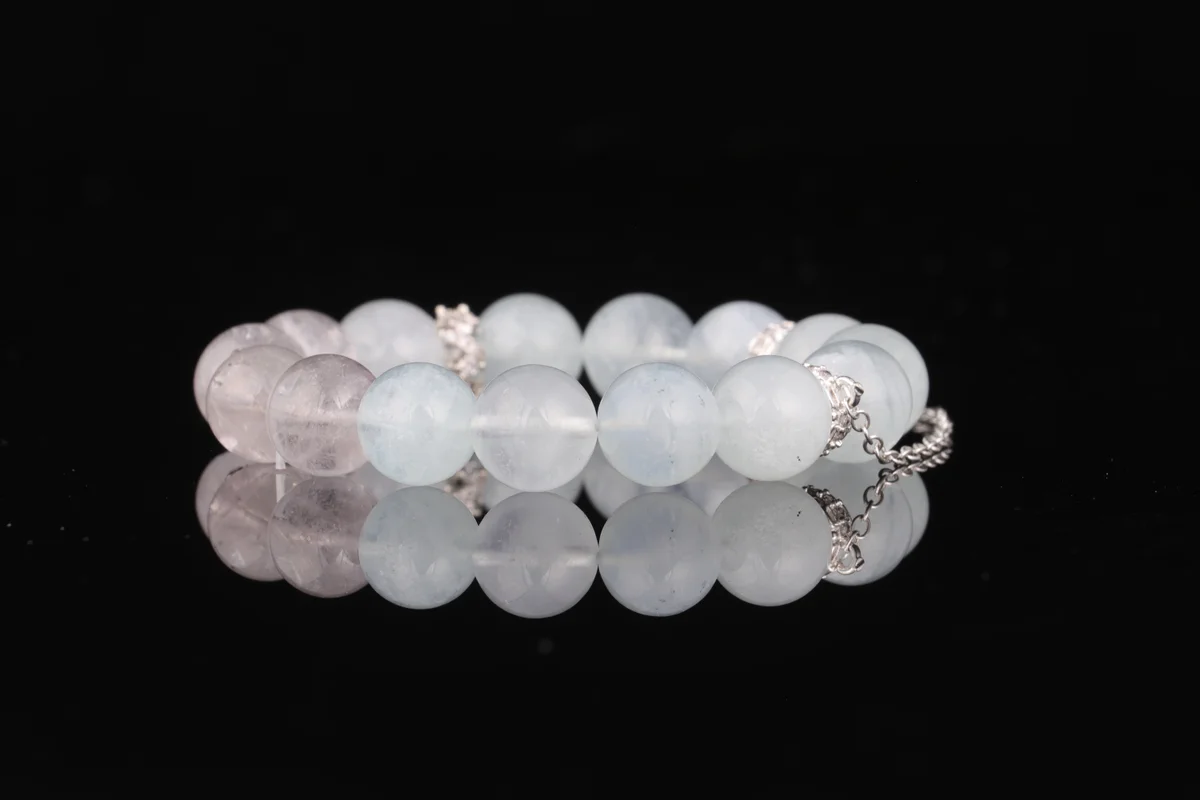 海藍寶對應招財納福的能量,適合希望提升財運、吸引好運的人群;白幽靈對應淨化負能的能量,適合需要緩解壓力、改善睡眠、清除負面情緒的人群。兩者結合,這款手鏈特別適合職場人士、創業者求財轉運,也適合學生、高壓工作者助眠減壓。無論是追求財富增長,還是尋求心靈寧靜,都能從中受益。