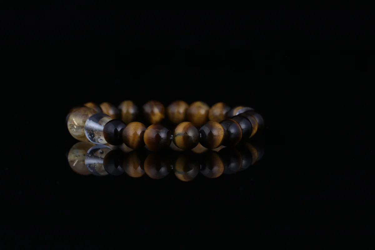天然黃虎眼黃膠花白水晶手鍊 生辰訂製專屬客製 招財轉運能量手鍊