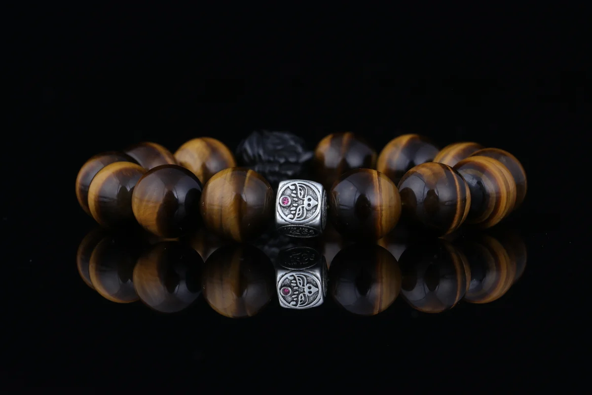 黃虎眼貔貅手鍊天然水晶銀曜石招財轉運辟邪男士本命年送禮必備