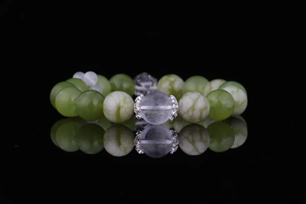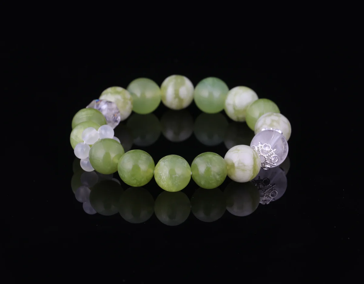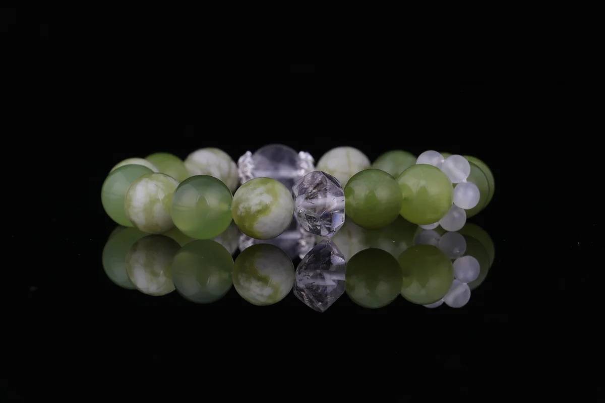 ✨天然青提奶綠水晶手串,輕奢小眾設計,五行屬木,助你招財納福、安神助眠。 💎 精選天然水晶原石,每一顆都蘊含大地能量,非人工合成。其柔和光澤能舒緩焦慮,提升睡眠品質;綠色對應心輪,吸引財富能量,適合壓力大、求財運的您。 🎁 自留佩戴或贈予摯友皆宜,搭配簡約服飾即顯高級感。日常佩戴於左手(左進右出),招財效果更佳。天然晶石每串紋路皆獨特,遇見即是緣分。