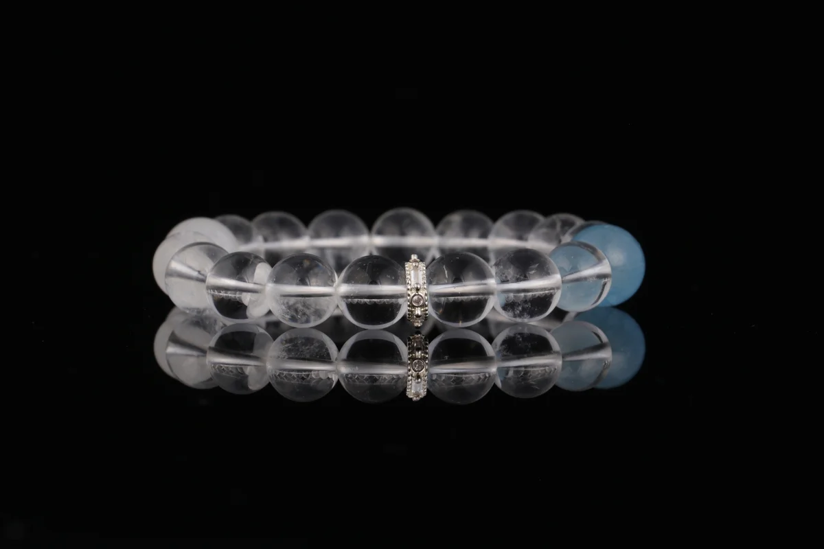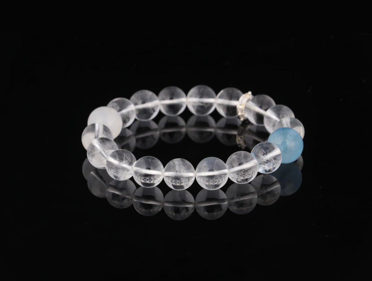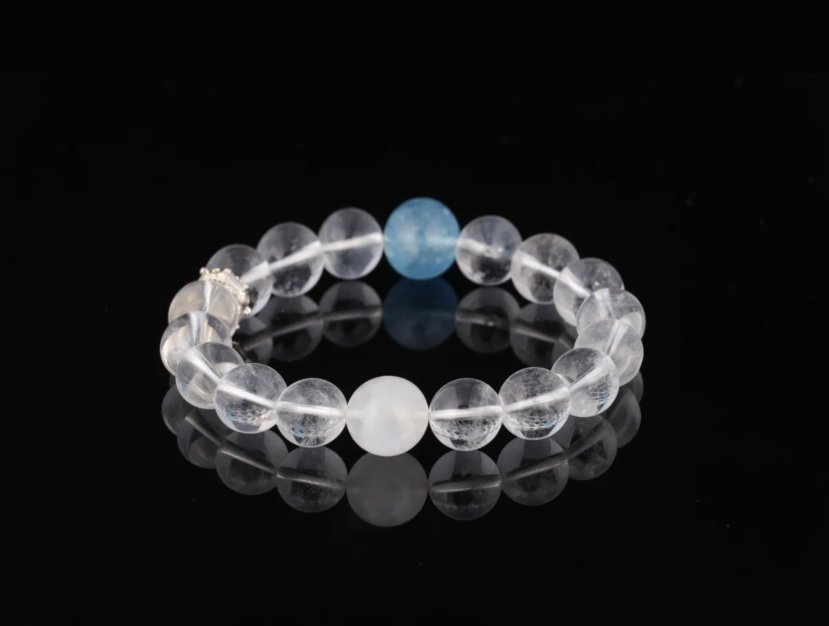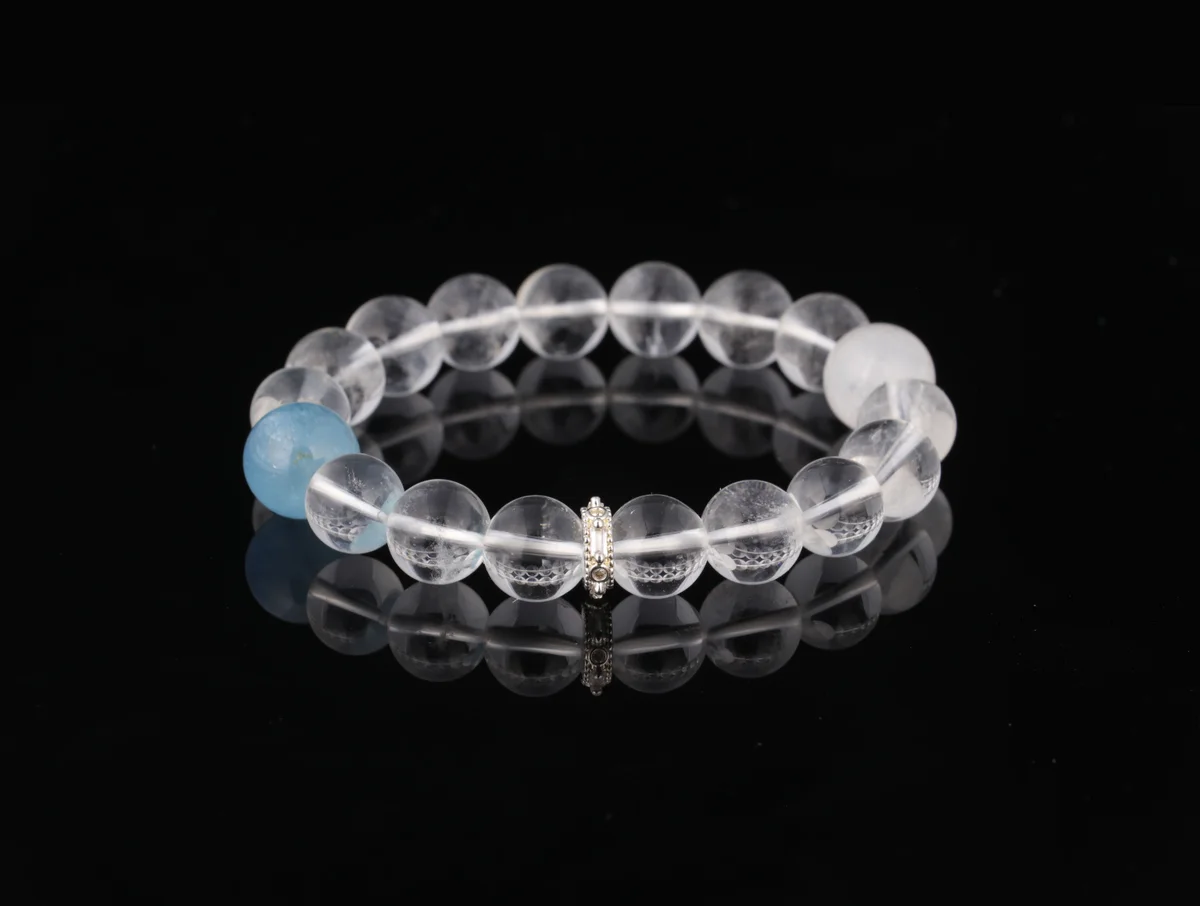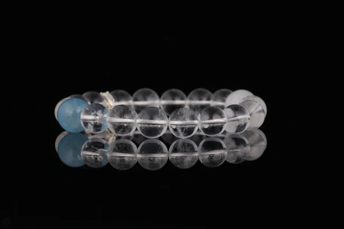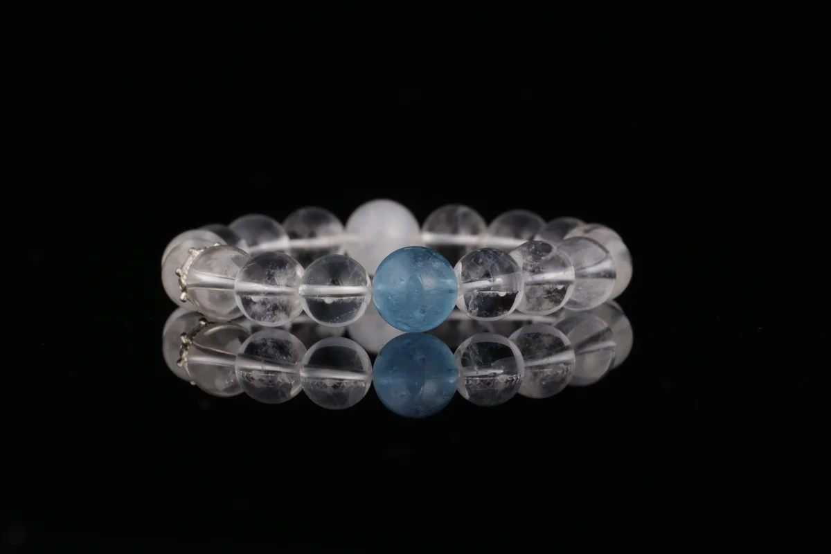 Q.這款天然白水晶白幽靈海藍寶手串有哪些功效?