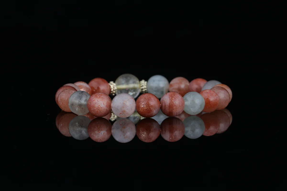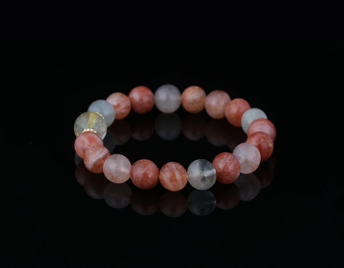 這款手鍊結合了天然阿魯沙月光石和金髮晶的雙重能量,功效顯著。月光石能安撫情緒、助深度睡眠,讓你在夜晚獲得寧靜休息;金髮晶則招正財、旺事業,促進財富積累和職業發展。雙倍能量協同作用,旨在助你整夜好眠、日進斗金,同時作為生辰訂製專屬能量串,它為你打造個人化的能量場,增強整體氣場與運勢流轉。
